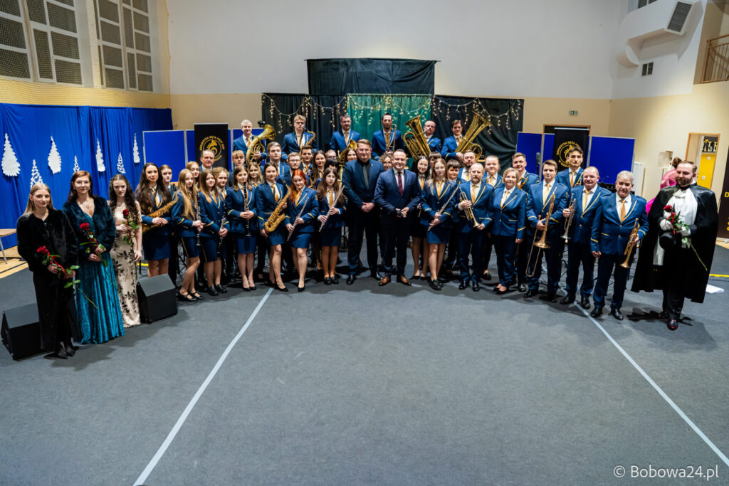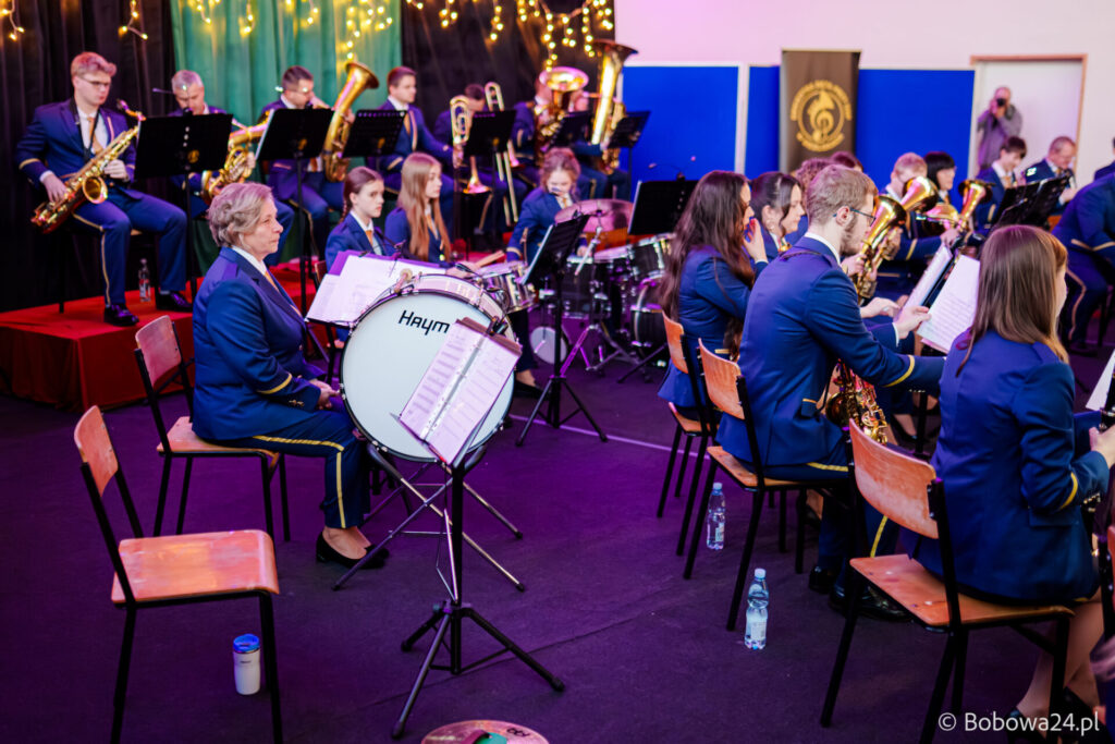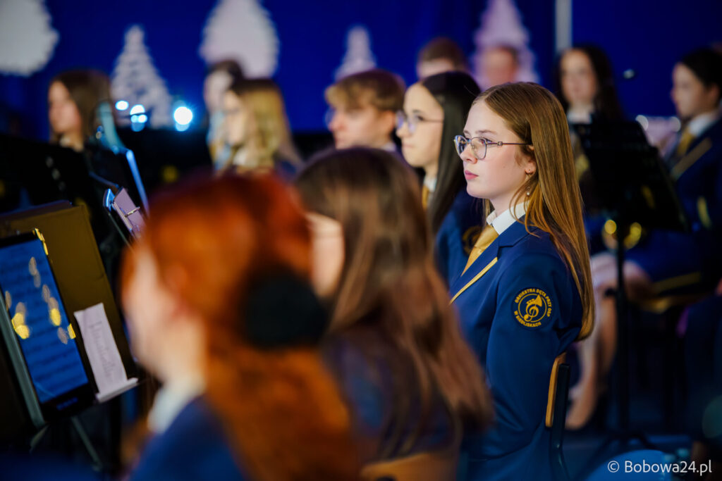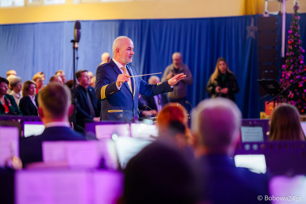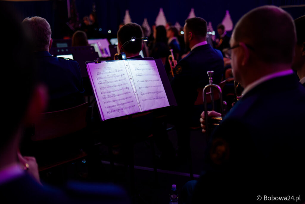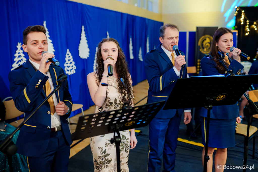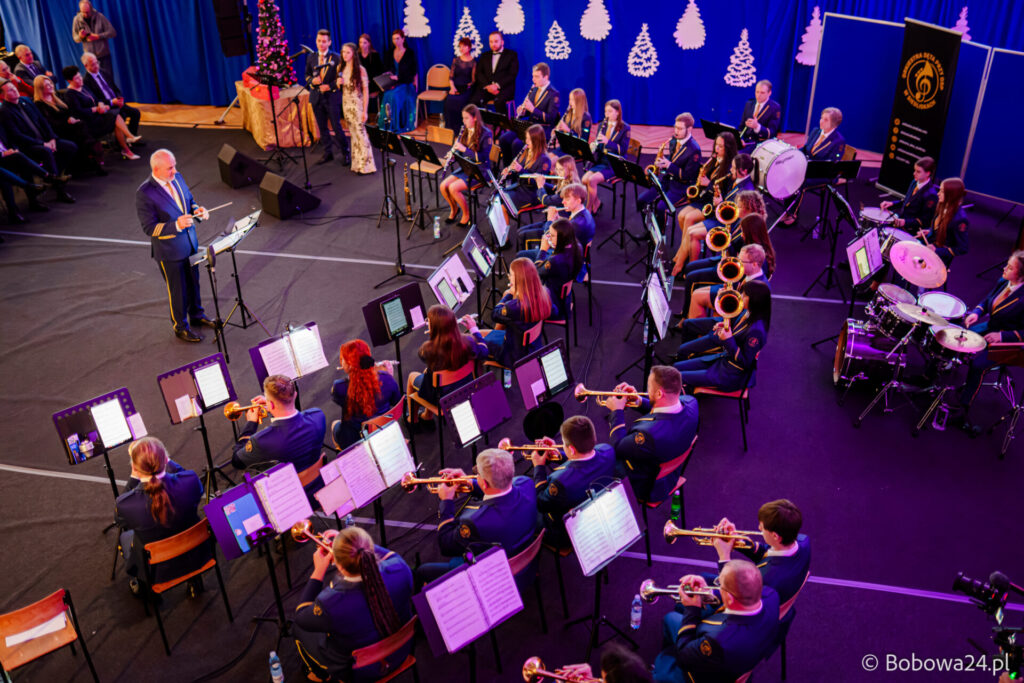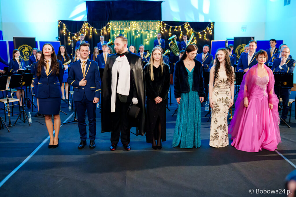Po oficjalnym rozpoczęciu dalszą część poprowadziły Elżbieta Fryczek i Izabela Motyka. Podczas koncertu poza tradycyjnymi kolędami zebrani mogli usłyszeć m.in. 8 debiutancko wykonanych utworów, w tym 4 utwory operetkowe (Czardasz Silvy, Aria Boniego, Duet Stasi i Boniego, Wiedeń miasto moich marzeń) zaaranżowane na orkiestrę dętą przez Jakuba Kotowicza, a także 2 świąteczne kompozycje przygotowane przez Adriana Górskiego (Bóg się narodził oraz Pastorałka od ucha do ucha). W części kolędowej po raz pierwszy zagraliśmy również Maleńką Miłość z repertuaru Eleni. Natomiast część rozrywkową rozpoczęliśmy od kultowego utworu Zacznij od Bacha. Zaraz po nim przenieśliśmy słuchaczy w świat operetki. Pomogli nam w tym niezwykli soliści, a mianowicie: pani dr Alicja Płonka (sopran) absolwentka Wydziału Wokalno-Aktorskiego klasy prof. Adama Szybowskiego Akademii Muzycznej w Krakowie oraz Jakub Kotowicz (baryton), były członek orkiestry, absolwent Wydziału Wokalno-Aktorskiego Akademii Muzycznej im. Karola Szymanowskiego w Katowicach – uczeń Pani Alicji.
