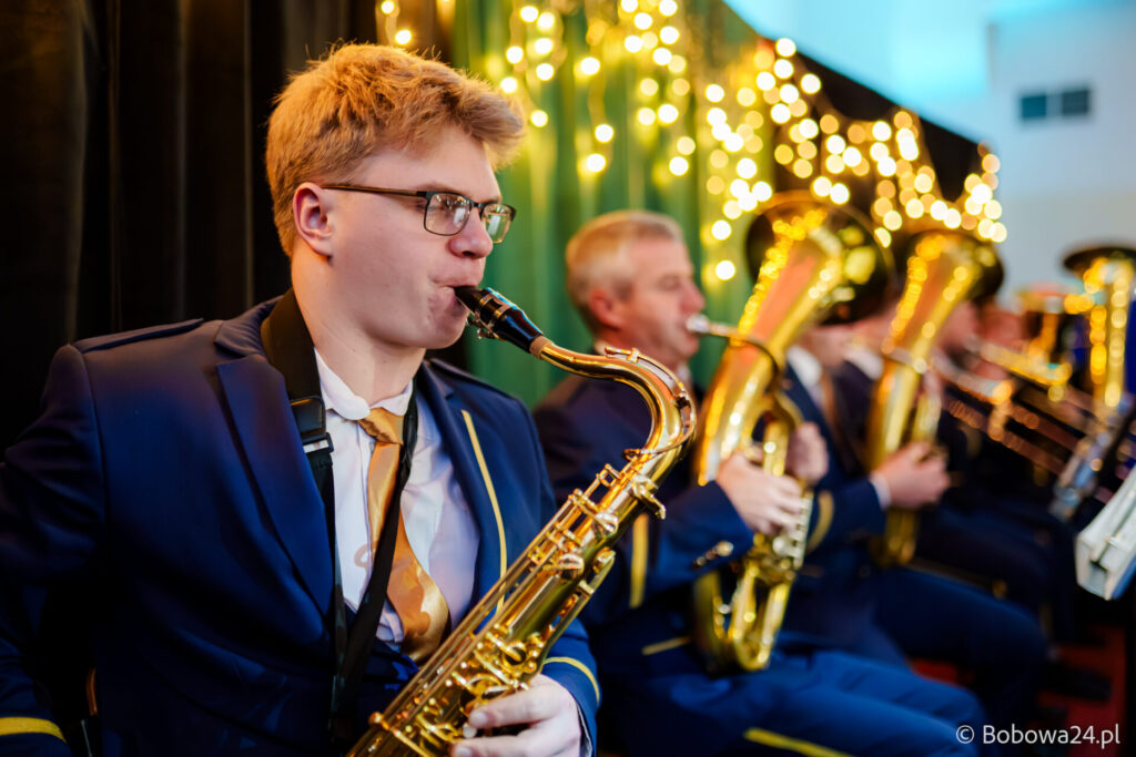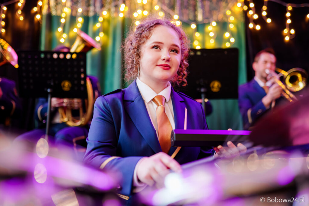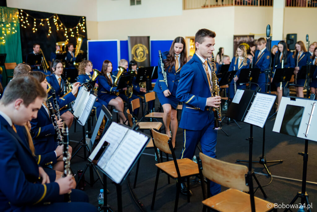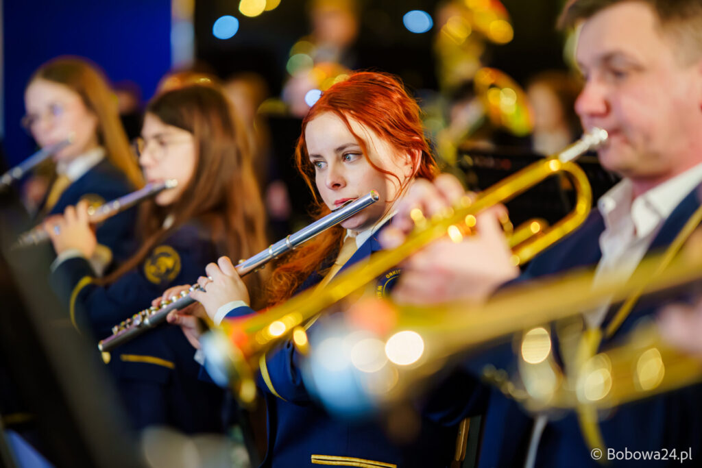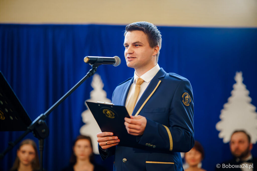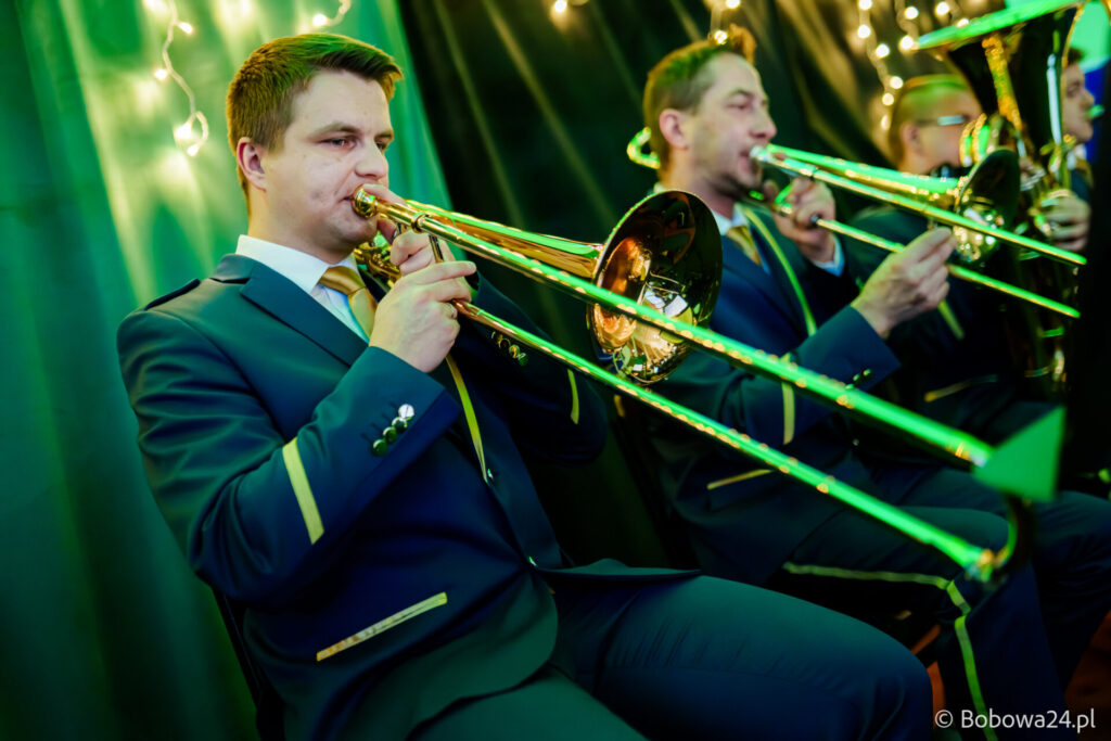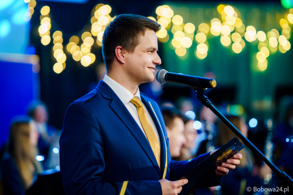 Po oficjalnym rozpoczęciu dalszą część poprowadziły Elżbieta Fryczek i Izabela Motyka. Podczas koncertu poza tradycyjnymi kolędami zebrani mogli usłyszeć m.in. 8 debiutancko wykonanych utworów, w tym 4 utwory operetkowe (Czardasz Silvy, Aria Boniego, Duet Stasi i Boniego, Wiedeń miasto moich marzeń) zaaranżowane na orkiestrę dętą przez Jakuba Kotowicza, a także 2 świąteczne kompozycje przygotowane przez Adriana Górskiego (Bóg się narodził oraz Pastorałka od ucha do ucha). W części kolędowej po raz pierwszy zagraliśmy również Maleńką Miłość z repertuaru Eleni. Natomiast część rozrywkową rozpoczęliśmy od kultowego utworu Zacznij od Bacha. Zaraz po nim przenieśliśmy słuchaczy w świat operetki. Pomogli nam w tym niezwykli soliści, a mianowicie: pani dr Alicja Płonka (sopran) absolwentka Wydziału Wokalno-Aktorskiego klasy prof. Adama Szybowskiego Akademii Muzycznej w Krakowie oraz Jakub Kotowicz (baryton), były członek orkiestry, absolwent Wydziału Wokalno-Aktorskiego Akademii Muzycznej im. Karola Szymanowskiego w Katowicach – uczeń Pani Alicji.