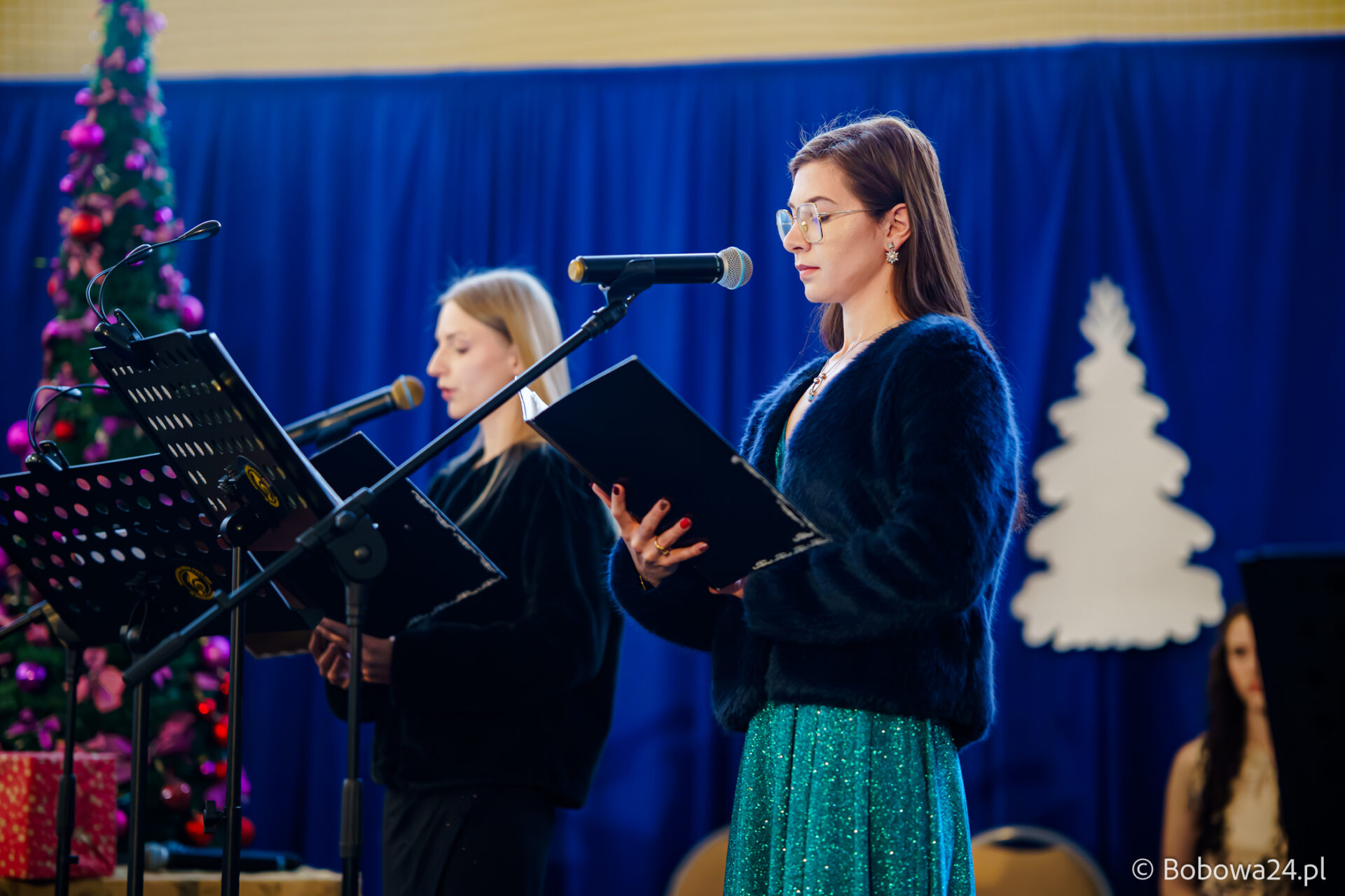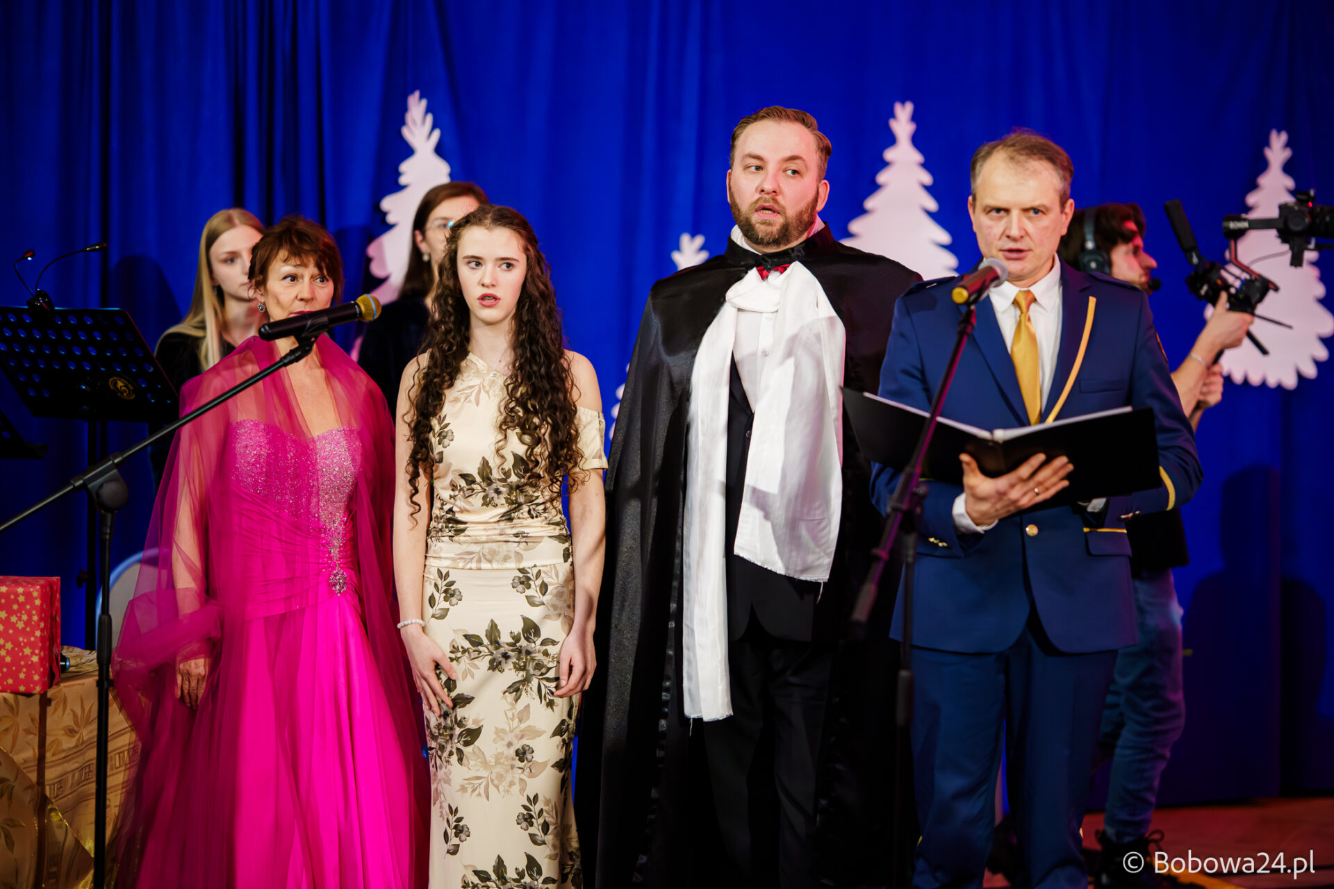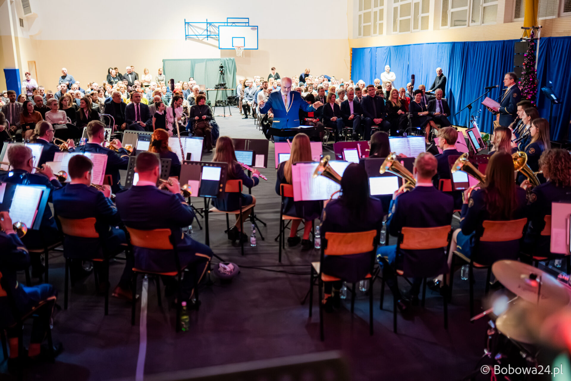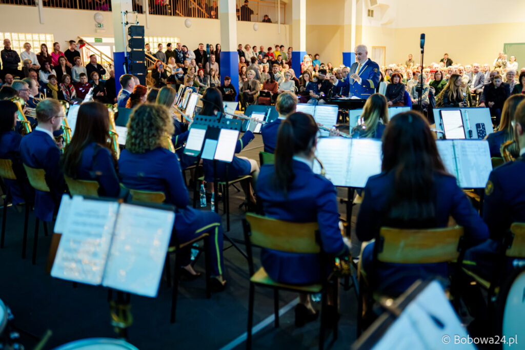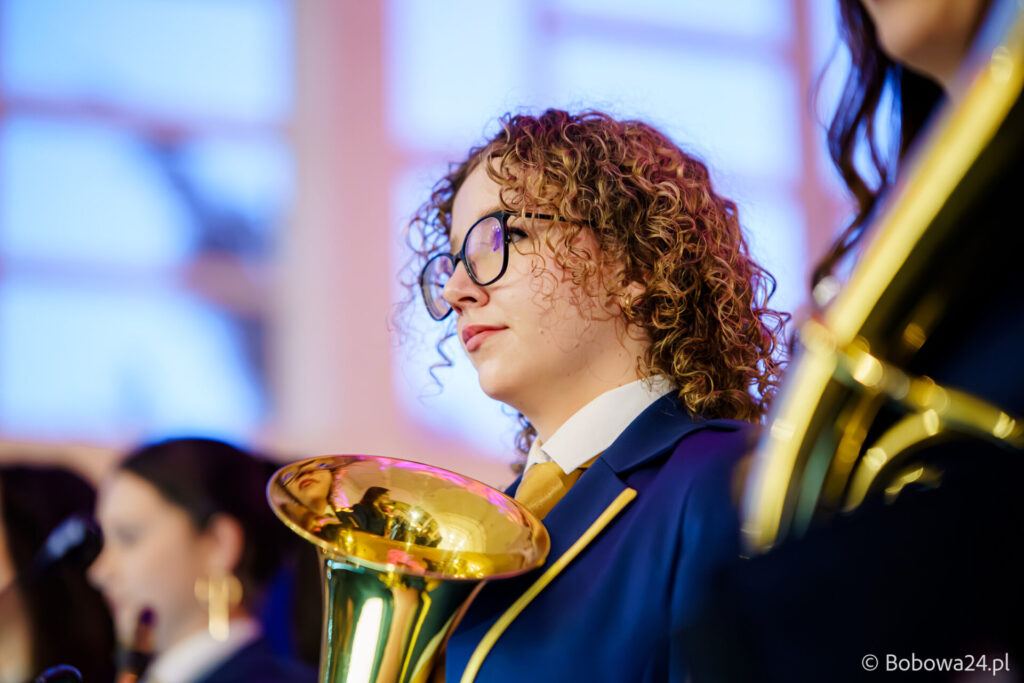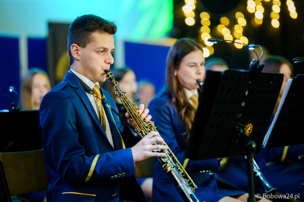 Po oficjalnym rozpoczęciu dalszą część poprowadziły Elżbieta Fryczek i Izabela Motyka. Podczas koncertu poza tradycyjnymi kolędami zebrani mogli usłyszeć m.in. 8 debiutancko wykonanych utworów, w tym 4 utwory operetkowe (Czardasz Silvy, Aria Boniego, Duet Stasi i Boniego, Wiedeń miasto moich marzeń) zaaranżowane na orkiestrę dętą przez Jakuba Kotowicza, a także 2 świąteczne kompozycje przygotowane przez Adriana Górskiego (Bóg się narodził oraz Pastorałka od ucha do ucha). W części kolędowej po raz pierwszy zagraliśmy również Maleńką Miłość z repertuaru Eleni. Natomiast część rozrywkową rozpoczęliśmy od kultowego utworu Zacznij od Bacha. Zaraz po nim przenieśliśmy słuchaczy w świat operetki. Pomogli nam w tym niezwykli soliści, a mianowicie: pani dr Alicja Płonka (sopran) absolwentka Wydziału Wokalno-Aktorskiego klasy prof. Adama Szybowskiego Akademii Muzycznej w Krakowie oraz Jakub Kotowicz (baryton), były członek orkiestry, absolwent Wydziału Wokalno-Aktorskiego Akademii Muzycznej im. Karola Szymanowskiego w Katowicach – uczeń Pani Alicji.