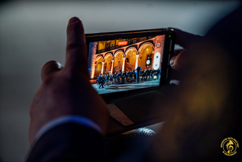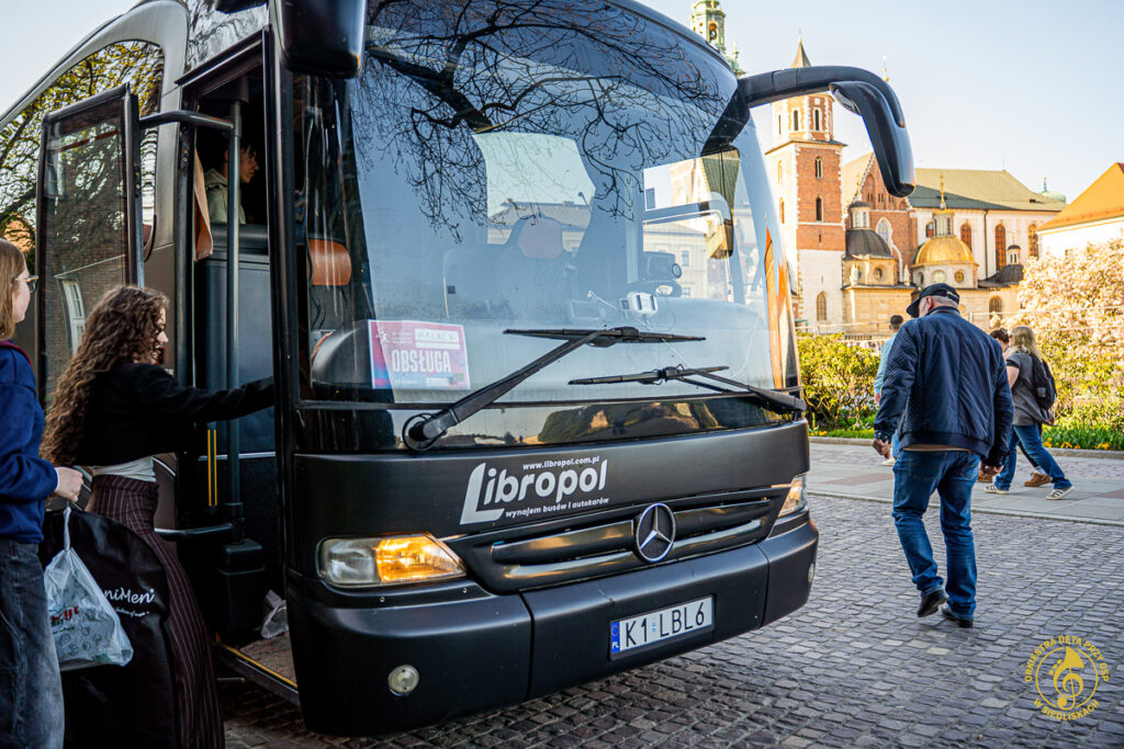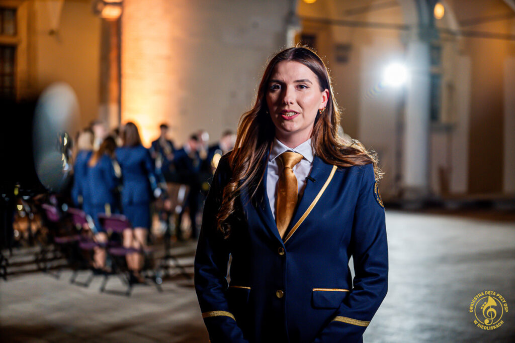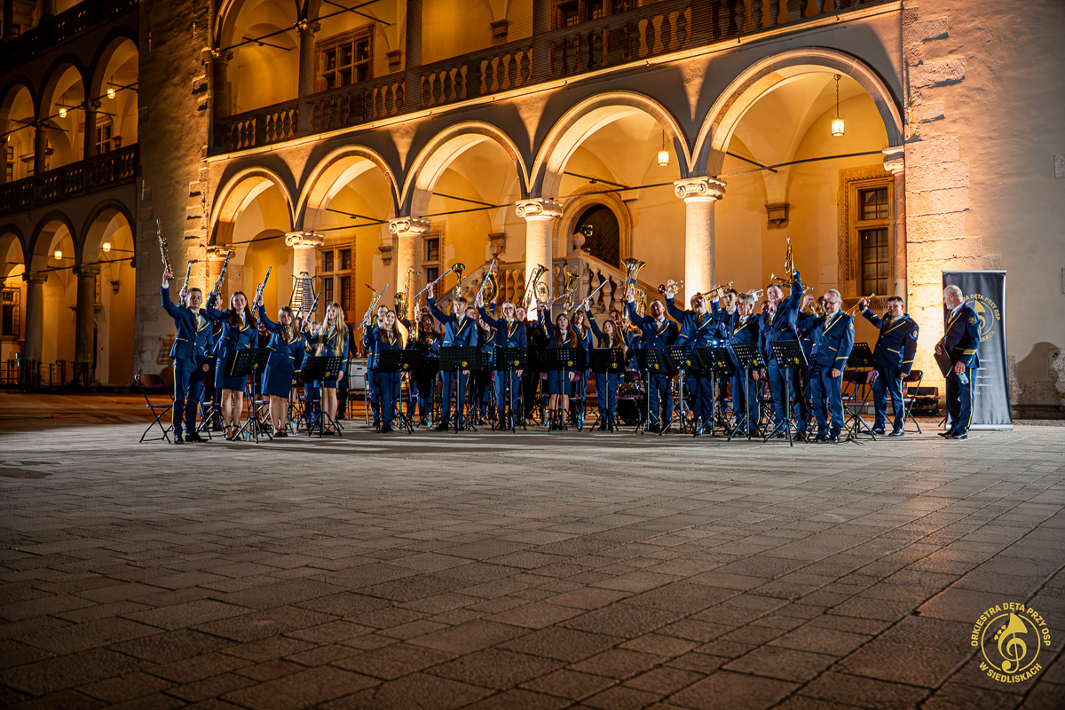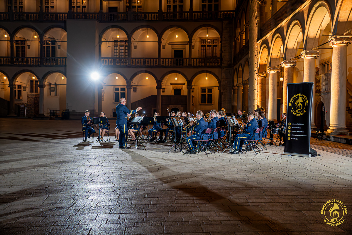 Od samego początku dało się czuć magię tego miejsca i piękno jego historii. Po krótkich ustaleniach z panem Grzegorzem – Komendantem Straży Zamkowej na Wawelu, rozpoczęliśmy przygotowania. Zostaliśmy ugoszczeni w Centrum Wystawowo-Konferencyjnym, gdzie mogliśmy przeprowadzić krótką próbę. Następnie szybka zmiana strojów i zajęcie miejsc w docelowej lokalizacji. Każdy z nas czuł ogromne podekscytowanie, a pięknie oświetlone mury tylko potęgowały wyjątkowy klimat tego wieczoru.