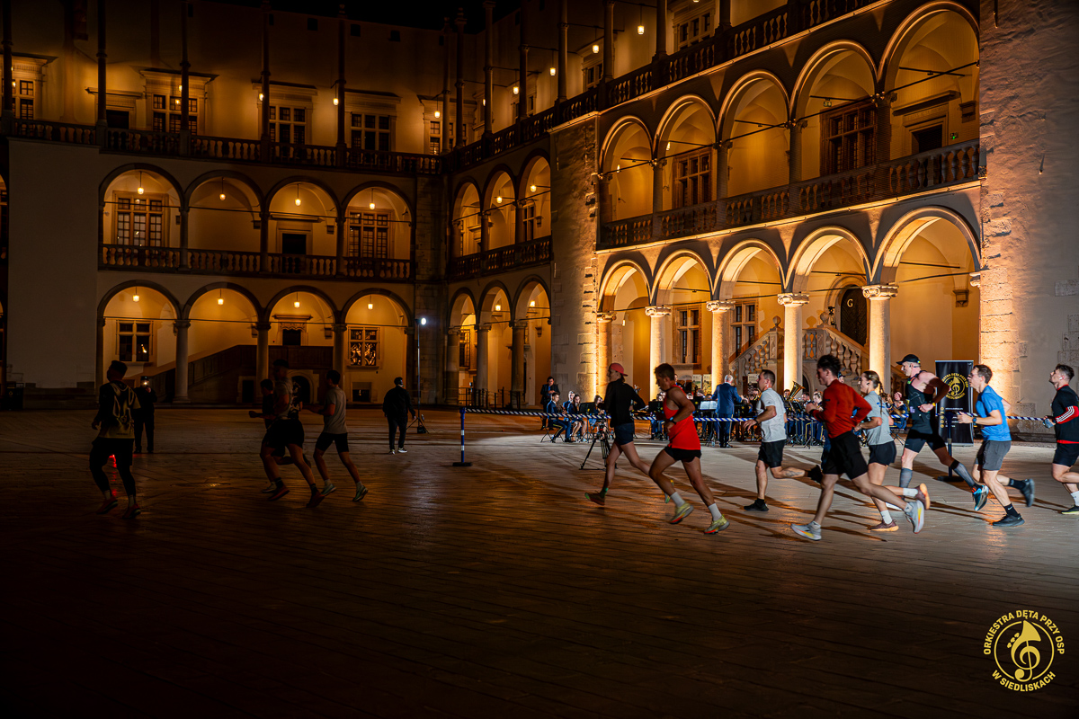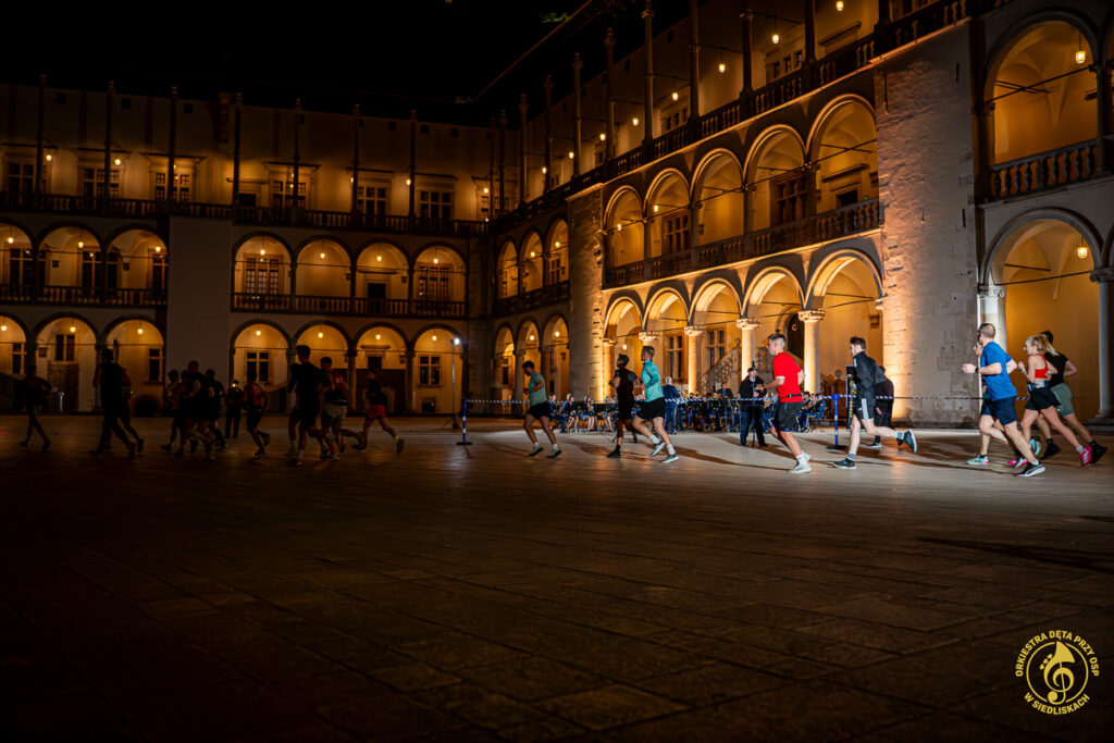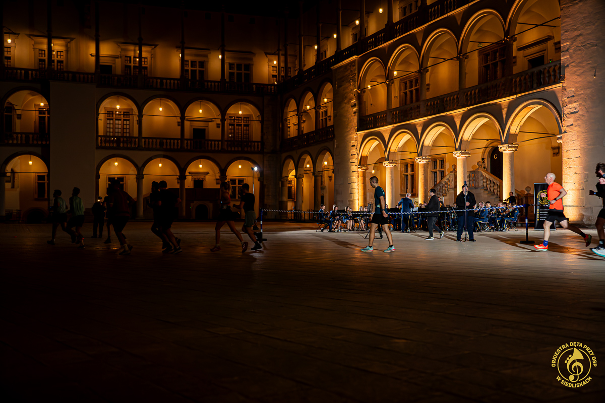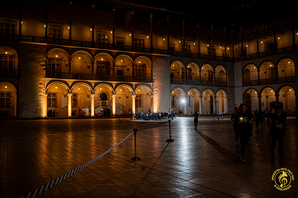 18 kwietnia 2026 roku mieliśmy przyjemność wystąpić jako punkt dopingu podczas OSHEE Biegu Nocnego w Krakowie, który wystartował o godzinie 20:30. To wydarzenie okazało się jednak jeszcze bardziej spektakularne za sprawą niezwykłej scenerii i wyjątkowych okoliczności. Mieliśmy zaszczyt zagrać na Dziedzińcu Arkadowym Zamku Królewskiego na Wawelu!