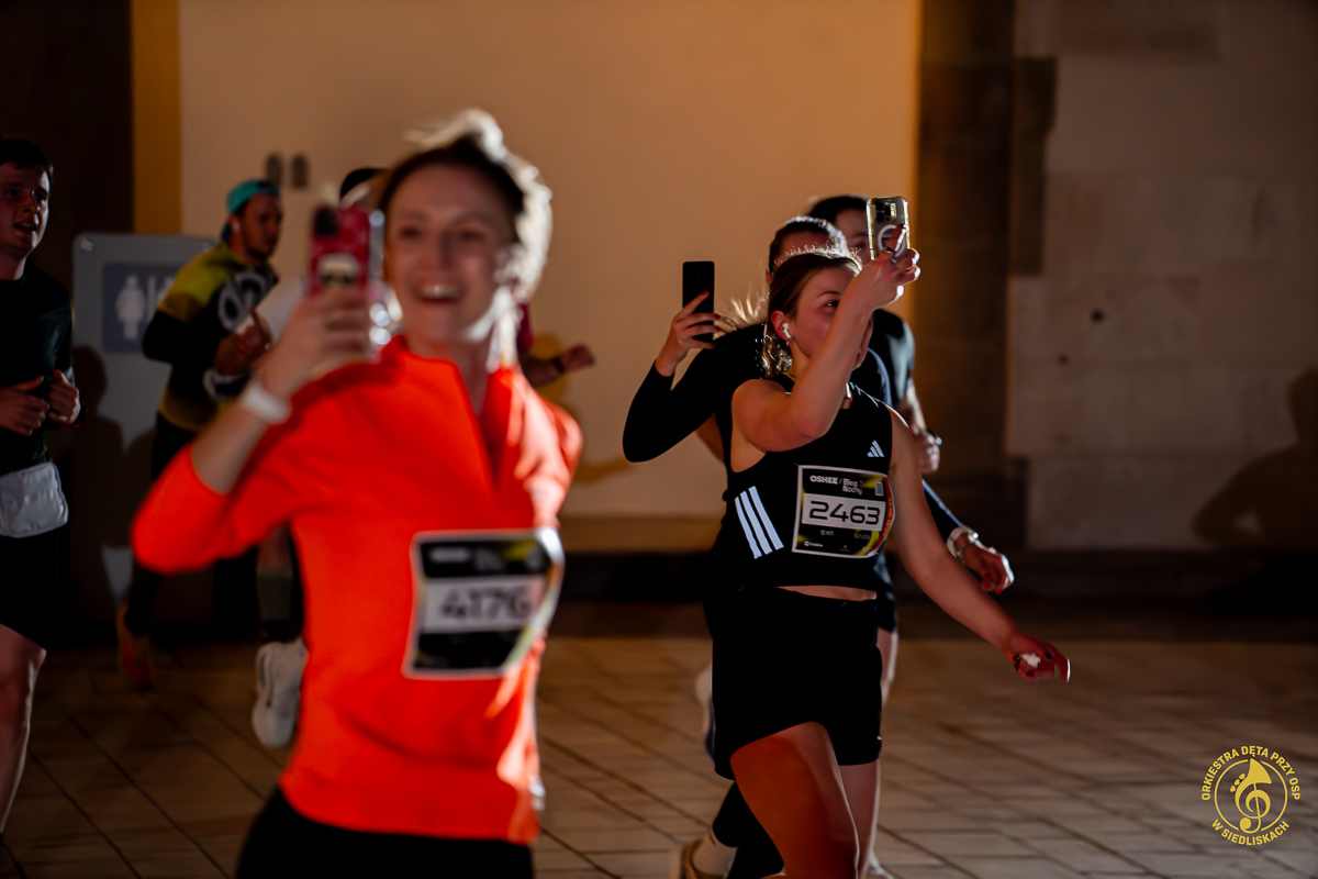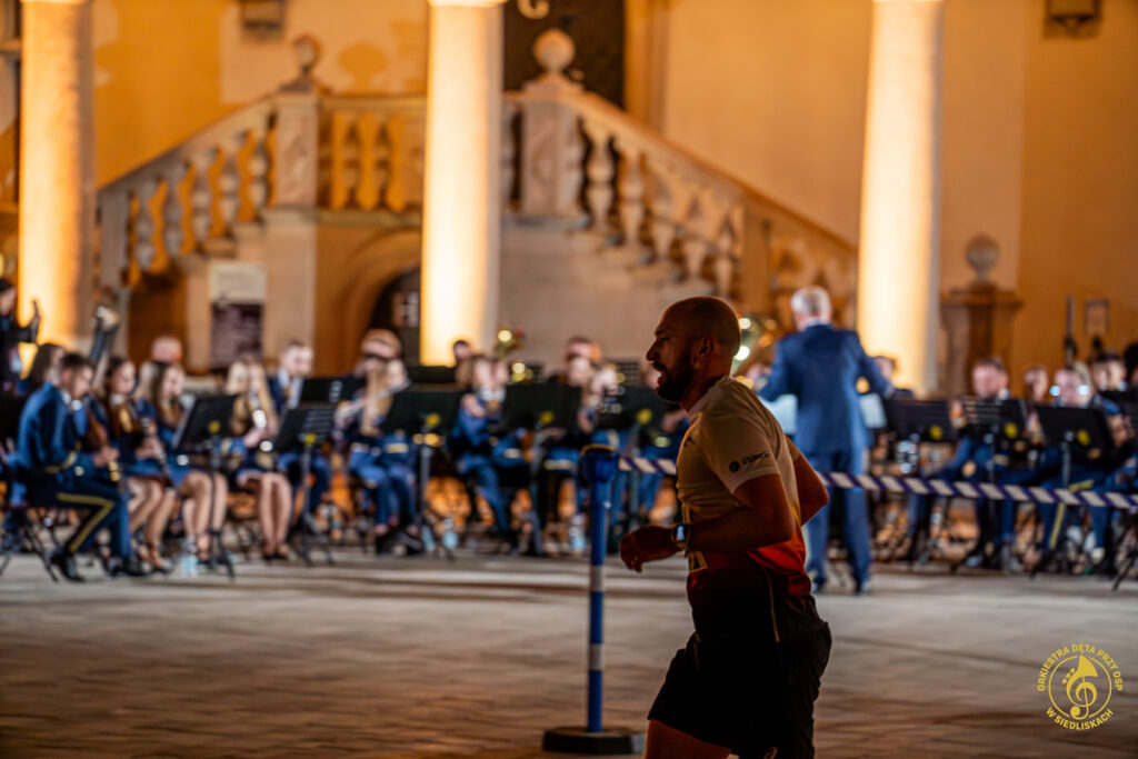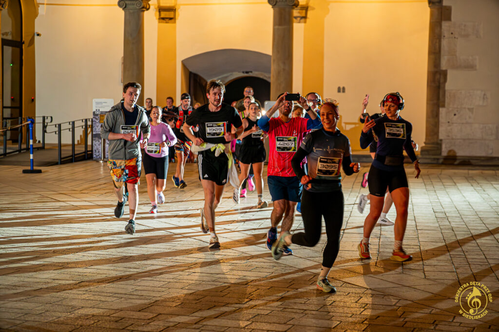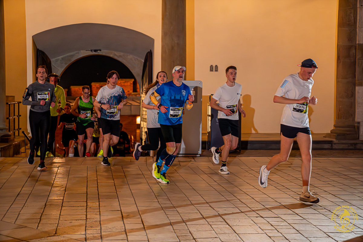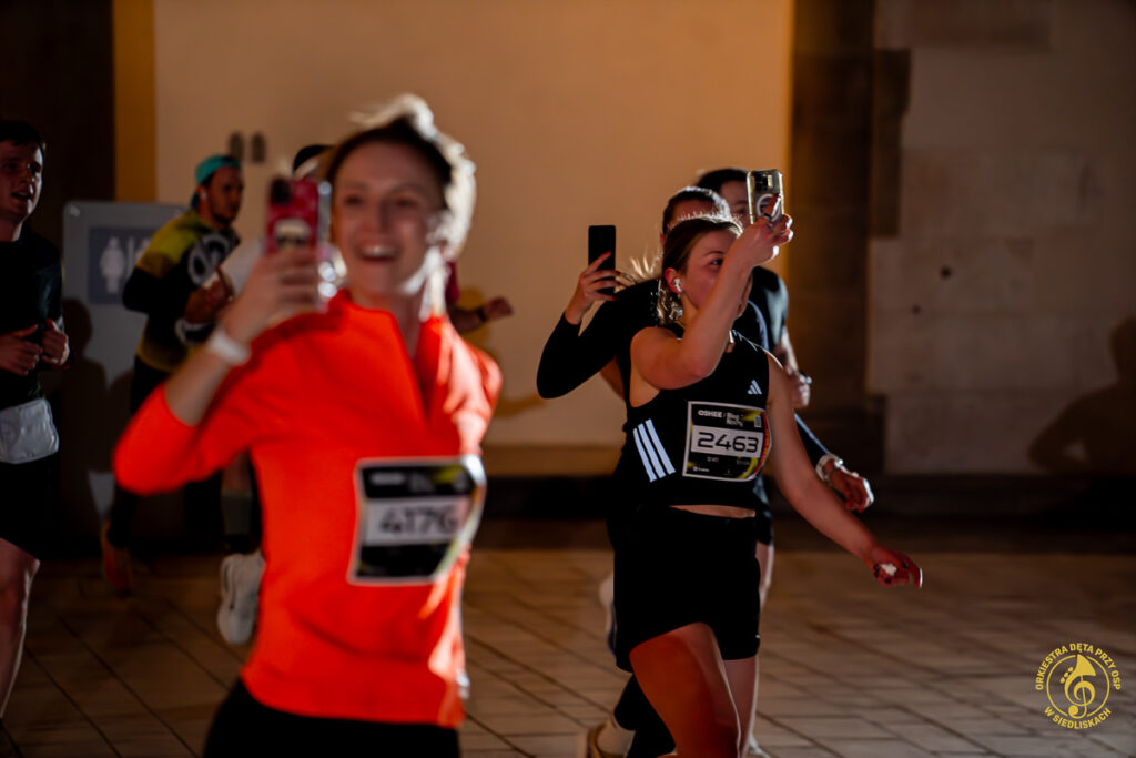 Dzięki współpracy z ONE – Agencją Reklamową mogliśmy zrealizować pierwsze ujęcia jeszcze przed pojawieniem się zawodników. Krótkie wywiady, nagrania, zdjęcia, ostatnie strojenie instrumentów i nagle, około 20:50, padła wiadomość: „PIERWSZY ZAWODNIK!”. Byliśmy gotowi i w pełni zmobilizowani. Do dziś pamiętamy dreszcz emocji towarzyszący chwili, gdy na dziedziniec wbiegali pierwsi biegacze. Potem kolejni i kolejni – aż do godziny 22:00.
