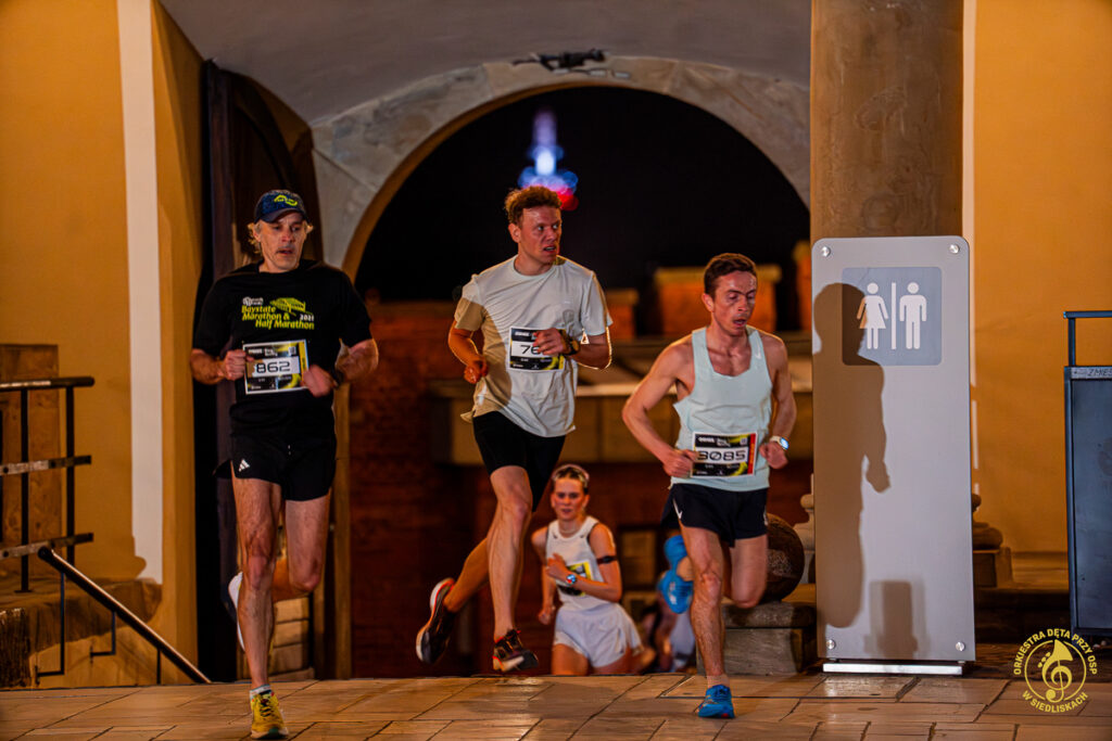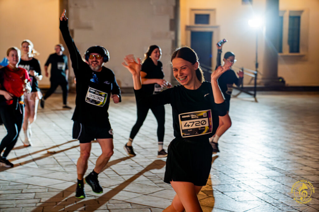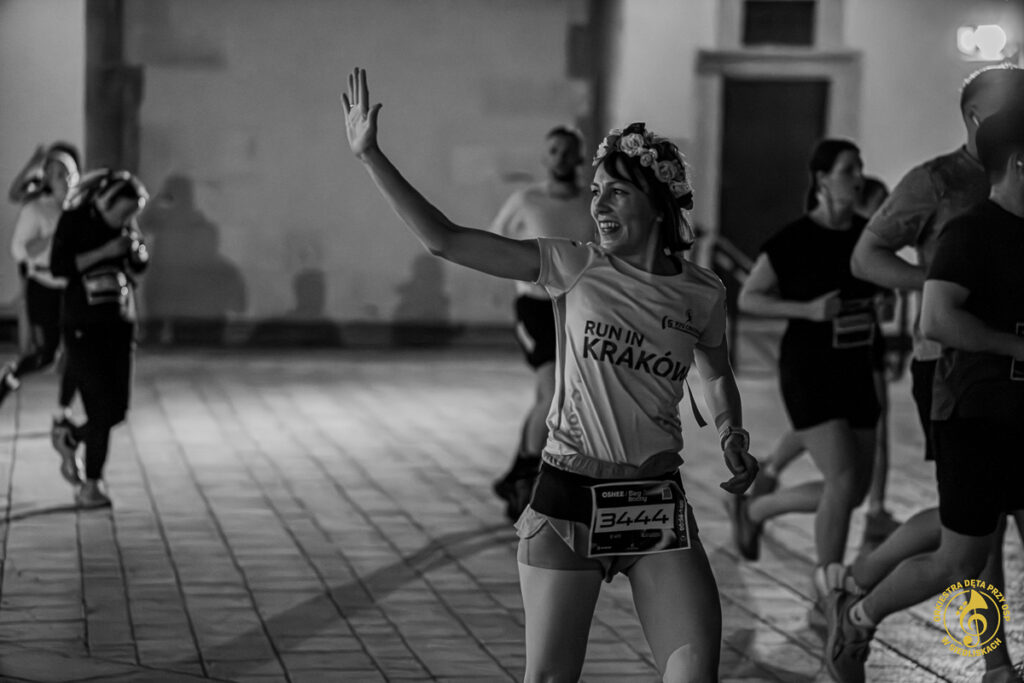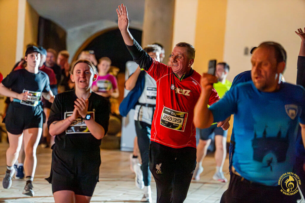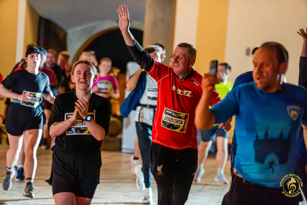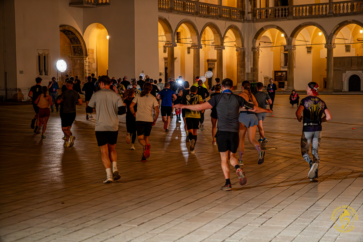 Dzięki współpracy z ONE – Agencją Reklamową mogliśmy zrealizować pierwsze ujęcia jeszcze przed pojawieniem się zawodników. Krótkie wywiady, nagrania, zdjęcia, ostatnie strojenie instrumentów i nagle, około 20:50, padła wiadomość: „PIERWSZY ZAWODNIK!”. Byliśmy gotowi i w pełni zmobilizowani. Do dziś pamiętamy dreszcz emocji towarzyszący chwili, gdy na dziedziniec wbiegali pierwsi biegacze. Potem kolejni i kolejni – aż do godziny 22:00.