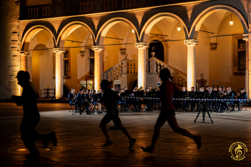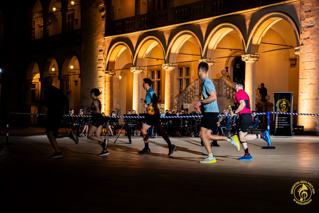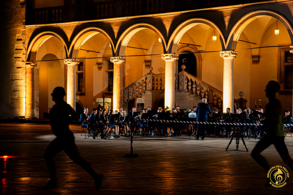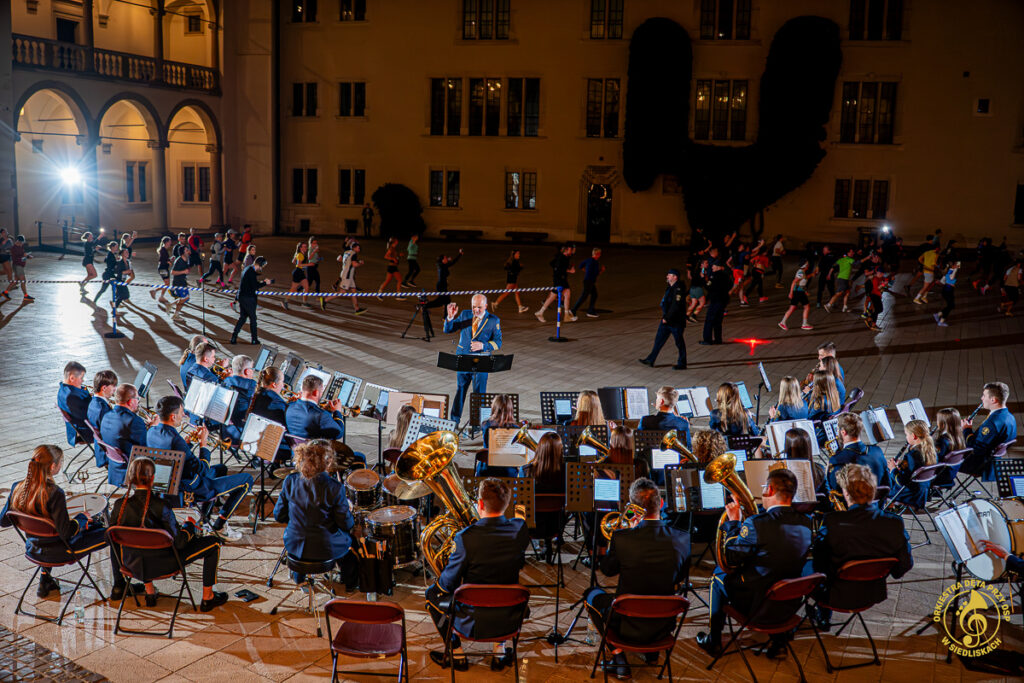 Spodziewaliśmy się świetnej atmosfery, ale to, co wydarzyło się tamtego wieczoru, przerosło nasze oczekiwania. Energia, wiwaty, brawa i okrzyki uczestników biegu stworzyły coś naprawdę wyjątkowego. W naszym repertuarze znalazły się m.in. „Gonna Fly Now” z filmu „Rocky” oraz motyw przewodni z serialu „Gra o tron” – utwory, które idealnie wpisały się w charakter miejsca i okazji. Nie zabrakło również klasycznych, a zarazem energetycznych utworów, takich jak „Tanz mit Strauss”, „Taniec węgierski nr 5” czy „Europa Marsch”.